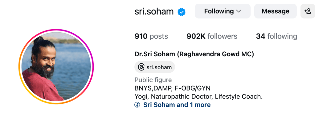 Sri Soham is a holistic wellness practitioner with a background in Yoga, Ayurveda, and Natural Healing sciences. He is a trained yoga teacher, a qualified Naturopathic Graduate in India, Wellness Life style coach, He is also the founder of Soham Ayur Yoga Ashram, with centers and programs in India and other countries.With years of experience guiding individuals toward physical balance, mental clarity, and sustainable well-being. His approach integrates traditional wisdom with mindful, practical application, offering personalised, individualised care rooted in awareness, simplicity, and compassion.